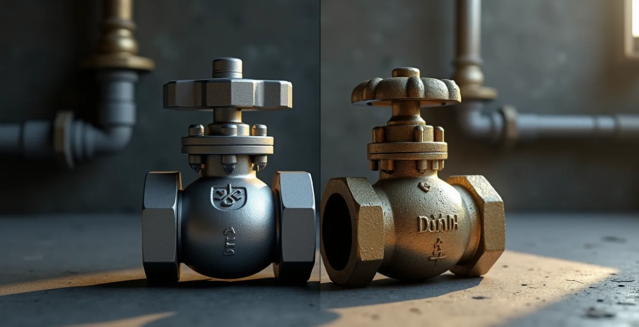 The single most important question for a main shutoff valve is not “does it work today?” but “will it work in a decade after not being touched?” This is where the fundamental design difference between a ball valve and a gate valve becomes a story of modern reliability versus engineered failure. A gate valve operates like a gate on a threaded rod; multiple turns are required to slowly lower a brass wedge to stop the flow. Over years of inactivity, especially with Quebec’s hard water, mineral deposits (scale) build up on these threads and the valve seat. The result is inevitable: the valve either seizes shut, or worse, seizes open and the stem snaps when you try to force it closed in an emergency.